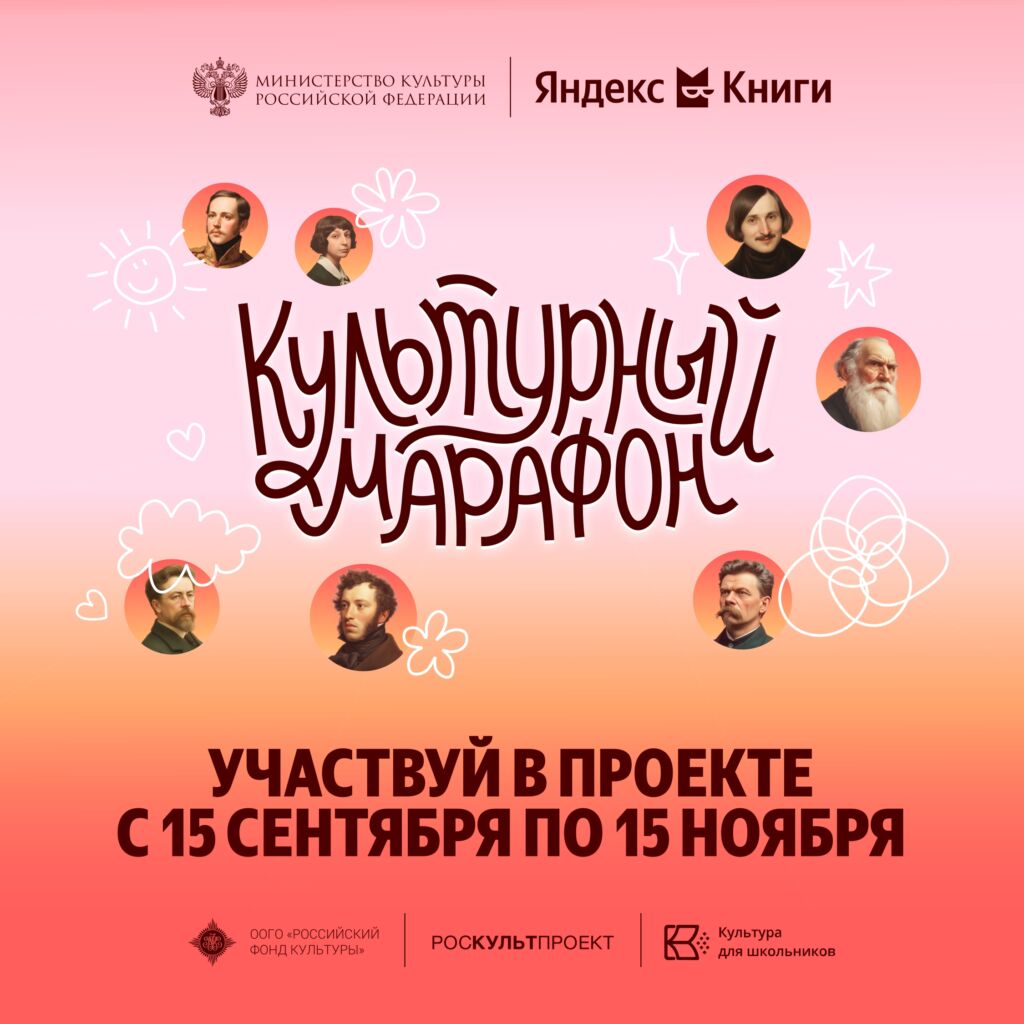 Министерство культуры Российской Федерации совместно с компанией «Яндекс» и сервисом «Яндекс Книги» запускает очередной «Культурный марафон», который поможет школьникам по-новому взглянуть на великие произведения русской и мировой литературы.